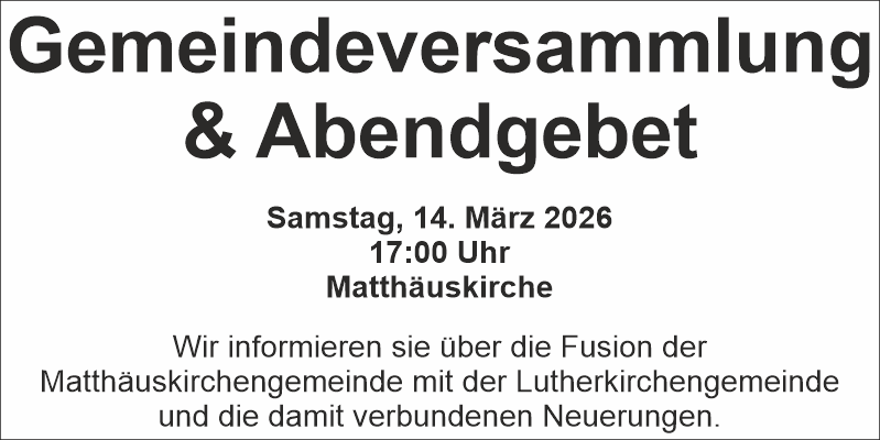Nach dem 08. März 2026 finden in der Matthäuskirche, auf dem Kirchberg, keine regelmäßigen Gottesdienste an Sonntagen mehr statt.