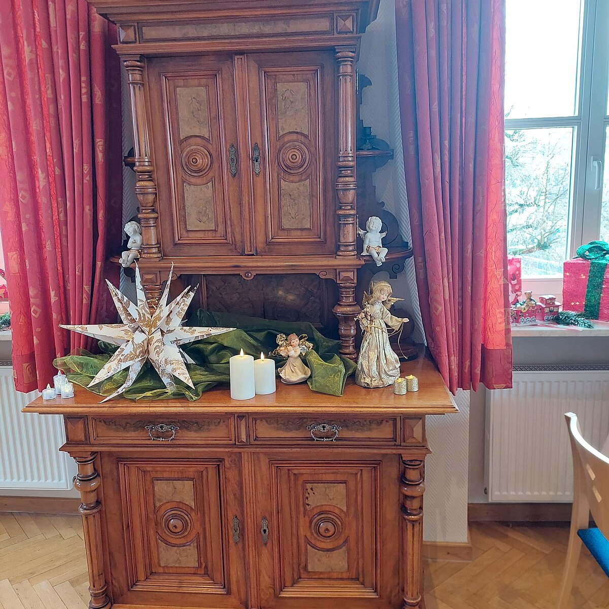 Auch in diesem Jahr war das Gemeindehaus mit Tannengrün geschmückt und im wunderbar weihnachtlich dekorierten Gemeindesaal konnten zahlreiche Gäste zu Kuchen und Kaffee begrüßt werden, viele von ihnen inzwischen Stammgäste unseres Kirchencafés. Viele helfende Hände hatten zuvor für eine großes Angebot von selbstgebackenen Kuchen und Torten gesorgt und schufen eine gemütliche, zum Verweilen einladende Atmosphäre.