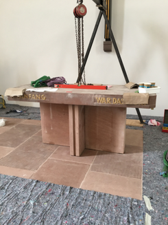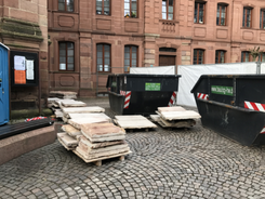 ...und haben aus den entfernten Sandsteinplatten des ehemaligen Fußbodens in unserer Kirche wunderbare Erinnerungen für uns gemacht. Ein engagiertes Ehepaar aus unserer Gemeinde hatte die Idee, den Fußboden nicht einfach auf den Bauschutt zu werfen.