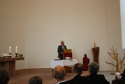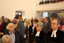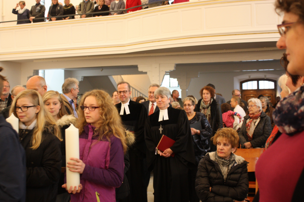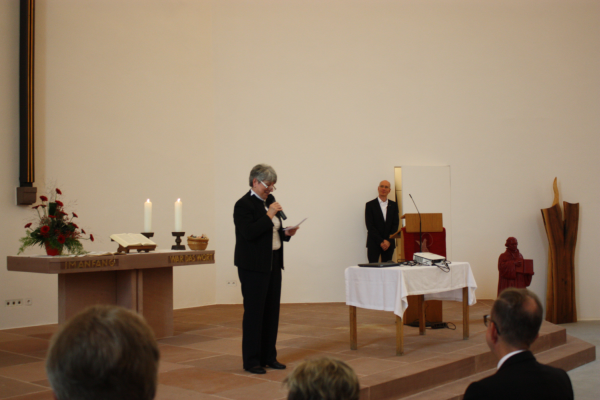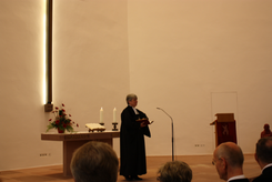 Den Gottesdienst gestalten Dekanin Waltraud Zimmermann-Geisert und Pfarrer Wolfdietrich Rasp. Der Festprediger ist Kirchenrat Wolfgang Schumacher, der vor einigen Jahren als "Pfarrer zur Dienstleistung" bei uns in Luther war. Es folgten Grußworte von OB Dr. Bernhard Matheis, dem Vorsitzenden des Presbyteriums Winfried Burk und unserem Architekten Sebastian Metz.