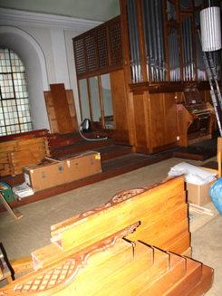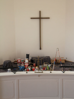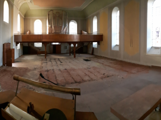 Am vergangenen Sonntag war es soweit: Der letzte Gottesdienst in unserer "alten" Kirche hat stattgefunden. Im Anschluss wurden die wichtigsten Utensilien wie die Altarbibel in den Luthersaal gebracht, wo in den kommenden Monaten die Gottesdienste abgehalten werden. Ab sofort kann es nun mit Hochdruck mit der Renovierung der Lutherkirche losgehen. Bereits in den Wochen vorher wurde fleißig gearbeitet: Verkaufte Bänke wurden abgebaut und -geholt, die Orgel zum Schutz vor Staub und Dreck eingepackt und weitere Vorarbeiten getroffen.