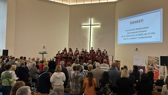 In der Lutherkirche das Offene Singen "Komm vorbei-Sing mit!" in neuem Format: Eingebettet in einen Gottesdienst, diesmal sogar mit einer Taufe. Gestaltet wurde es von Wolf-Rüdiger Schreiweis und seinen Churchies.