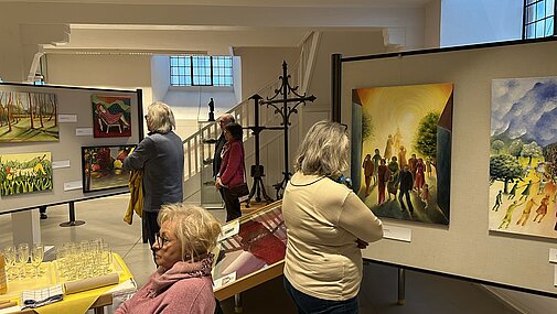 Dieser Abend war eine Symbiose aus bildender und musikalischer Kunst. Auf der einen Seite die Bilder von Traudel Hofmann, auf der anderen Seite die Musik von Achim Bißbort, Steffi Sieber und Peter Herzler. Ein Genuss für Augen und Ohren.