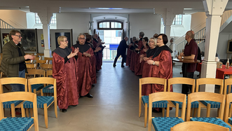 Gemeinsam haben allen Stadtgemeinden (Markus, Johannes, Paulus, Frieden, Gersbach-Winzeln, Matthäus, Luther) mit der musikalischen Unterstützung von der Band Tricoustix einen Gottesdienst auf die Beine gestellt, mit dem die Arbeit der Tafel gewürdigt wurde. Was lag da näher als diesen Gottesdienst im Prot. Gemeindezentrum auf dem Kirchberg (Matthäuskirche) , in direkter Nachbarschaft zur Tafel zu feiern: Nach diesem Lyriks-Gottesdienst mit Übersetzungen den Lieder und deren Auslegung, gab es Suppe satt für alle. Jede Gemeinde hat dazu eine Suppe mitgebracht, sodass aus insgesamt 7 Sorten ausgewählt werden konnte.