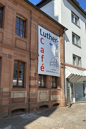 Verkaufsoffener Sonntag in Pirmasens, da darf das Luthercafé nicht fehlen. Da der untere Teil der Fußgängerzone nicht mehr so belebt ist wie früher, haben wir uns entschlossen großflächig mit einem Banner zu werben. Erstes Fazit: wir konnten deutlich mehr Besucher empfangen.