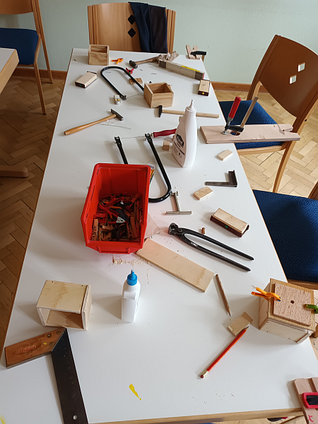 Bei der Kinderaktion im April ging es richtig handfest zu: Drei Stunden lang wurde mit großer Begeisterung gesägt, gebohrt, gehämmert, geschliffen und gemalt. Elf Kinder im Alter von vier bis zehn Jahren waren mit dabei und konnten unter der fachkundigen Anleitung von Frank Kunsmann und Achim Bißbort ihre handwerklichen Fähigkeiten ausprobieren. Entstanden sind dabei tolle Würfelspiele aus Holz – selbstverständlich inklusive passender Würfel. Mit viel Stolz wurden die fertigen Spiele direkt ausprobiert. Eine rundum gelungene und kreative Aktion, der allen noch lange in Erinnerung bleiben wird!